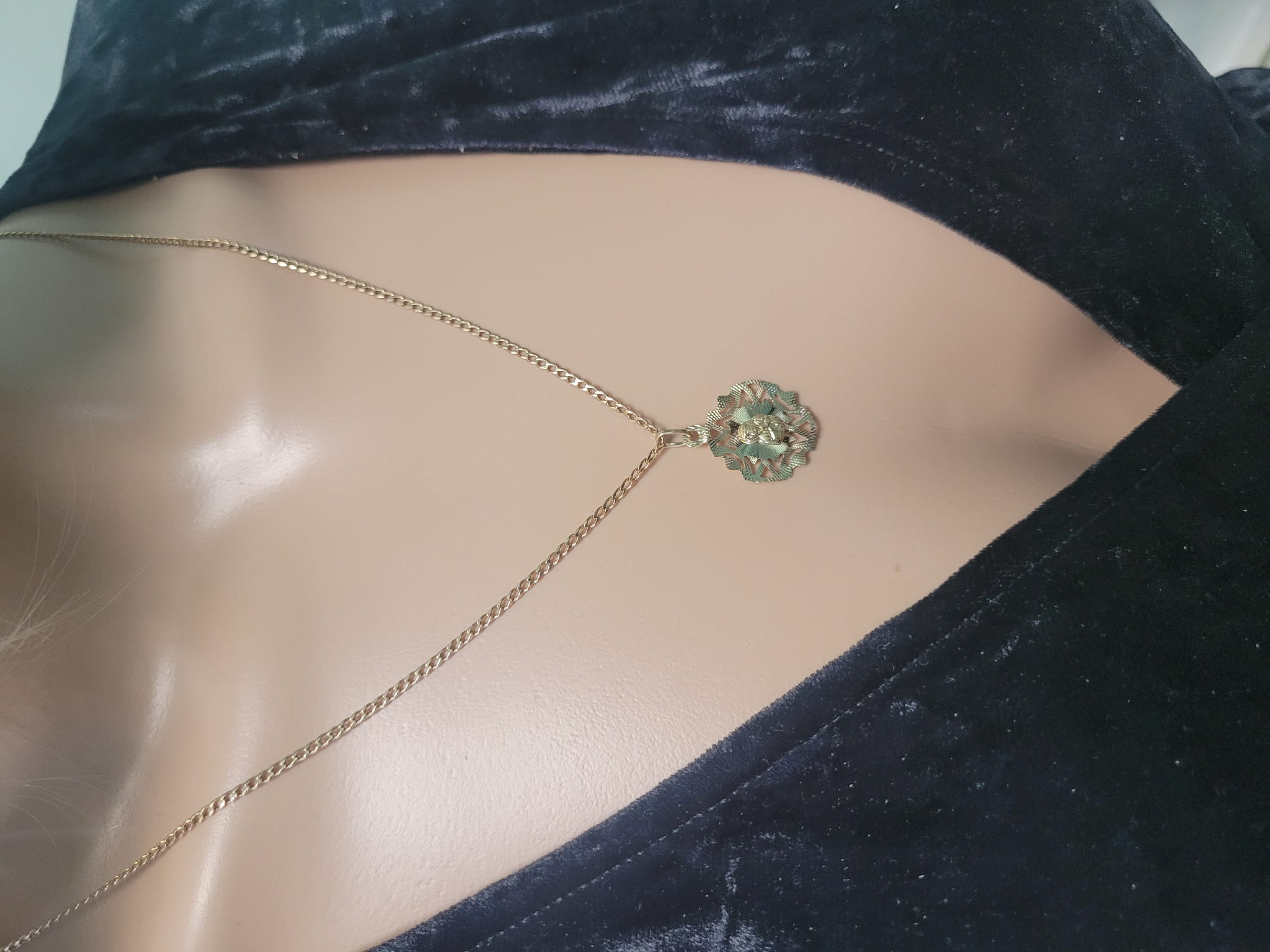 Złoty medalik przedstawiony w naszej ofercie został wykonany z wysokiej jakości złota próby 585.